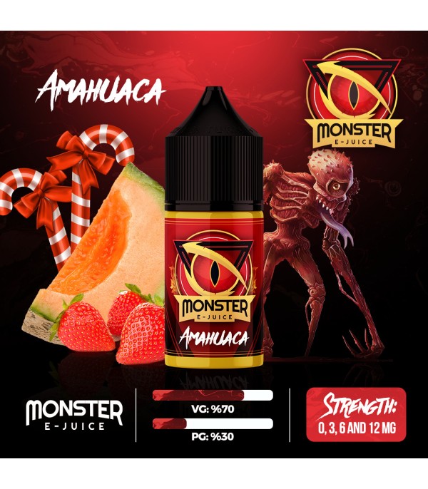 Monster Amahuaca 30ml e-likit, kantalup kavunu, kavun ve çileğin tatlı şekerleme notalarıyla buluştuğu meyveli bir lezzettir. %70 VG/%30 PG oranıyla yoğun buhar ve dengeli aroma sunar. Tatlı ve meyveli e-likit arayanlar için ideal, keyifli bir içim deneyimi için hemen keşfedin!