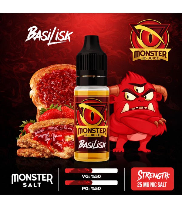 Monster Basilisk Salt Likit 10ml, bisküvi ve çilek reçeli aromalarının tatlı ve yoğun birleşimi ile hazırlanan, 50VG/50PG oranı ve 25mg nikotin seviyesi sayesinde pod sistem elektronik sigara cihazlarında dengeli buhar ve pürüzsüz içim deneyimi sunan özel bir salt likittir.