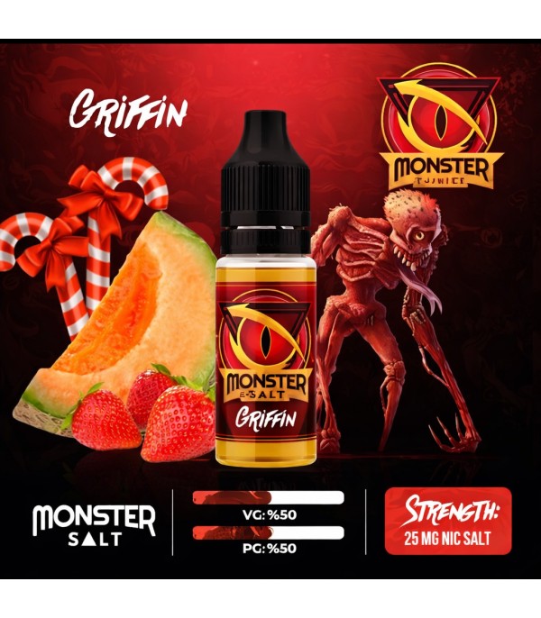 Monster Griffin Salt Likit ile tatlı bir vape deneyimine hazır olun! Kavun, çilek ve şekerleme notalarını birleştiren bu 10ml salt likit, 25mg nikotin gücü ve 50/50 PG/VG oranıyla MTL pod cihazlar için idealdir. İngiltere menşeli bu özel karışımı keşfedin.