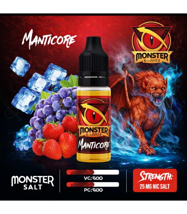 Monster Manticore Salt Likit 10ml ile tanışın! Üzüm, çilek ve ferahlatıcı mentol (ice) notalarını birleştiren bu premium salt likit, 25mg nikotin gücüne sahiptir. 50/50 PG/VG oranı ve MTL içim için idealdir. Pod cihazlarla uyumlu bu lezzeti kaçırmayın. Hemen keşfedin!